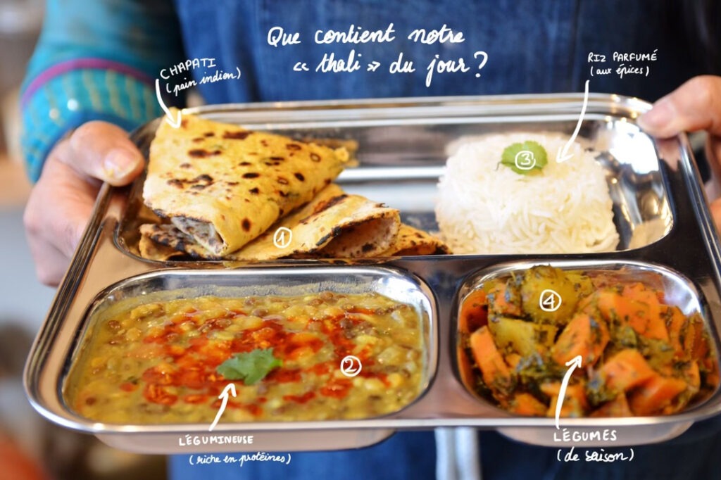Le thali [थाली], est bien plus qu’un simple repas. C’est une expérience culinaire qui vous emmène au cœur de la tradition indienne. Nos plateaux repas complets et végétariens, offrent une variété de saveurs, de textures et de nutriments.